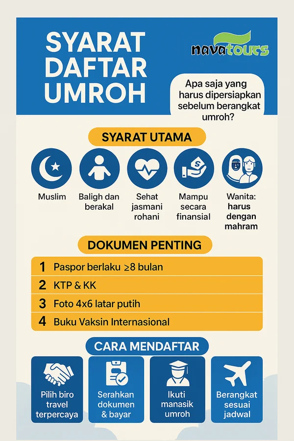 Umroh adalah impian banyak umat Muslim. Namun, bagi kamu yang baru pertama kali ingin berangkat, mungkin masih bingung soal syarat daftar umroh. Apakah ribet? Harus menyiapkan dokumen apa saja?